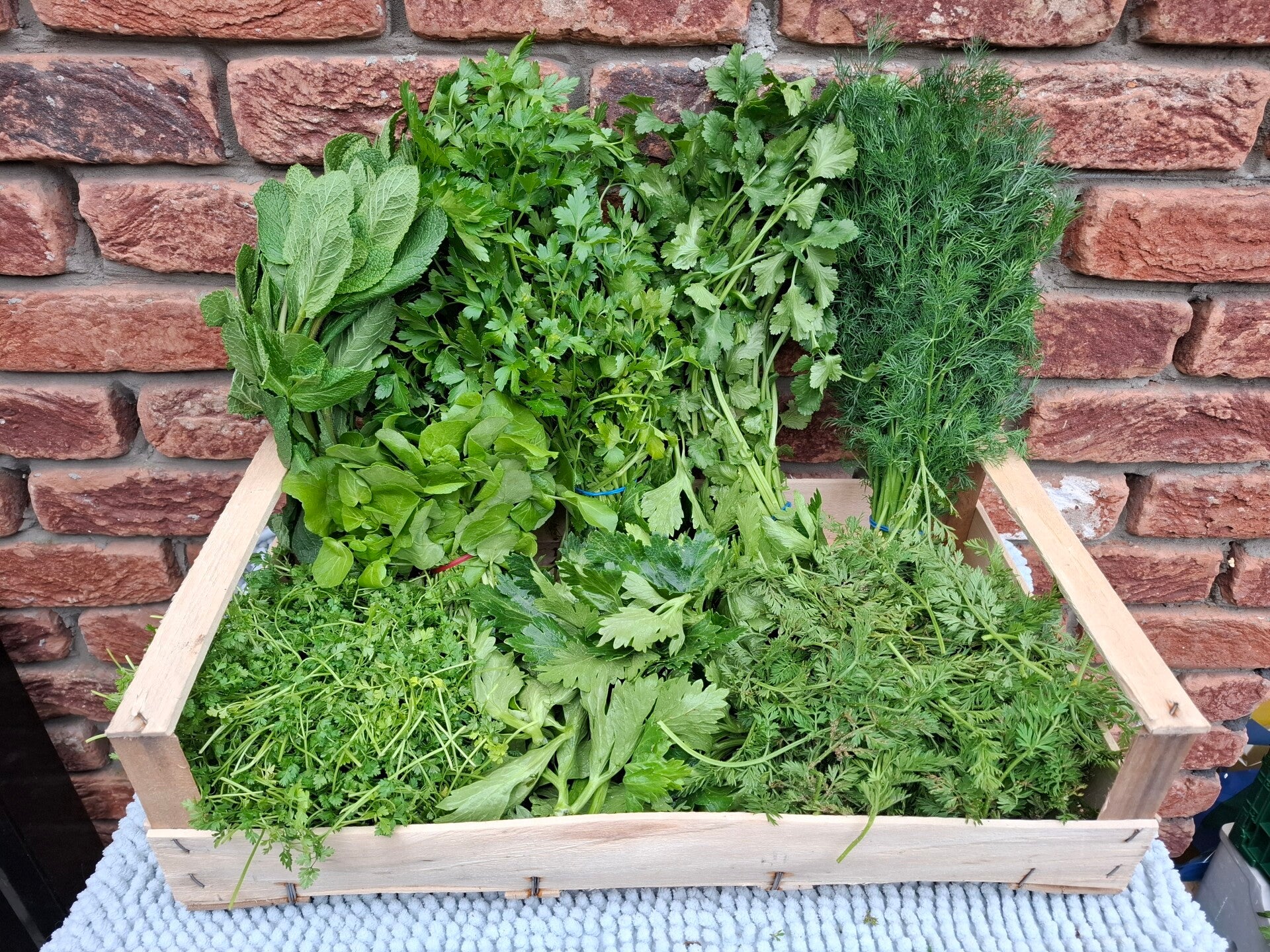 peterselie, dille, munt, koreander, kervel, waterkers, selderblad en wortelloof